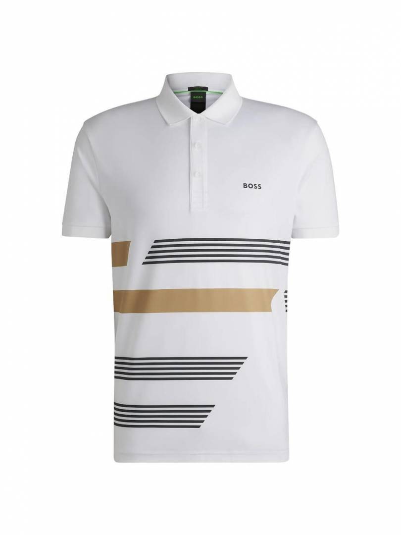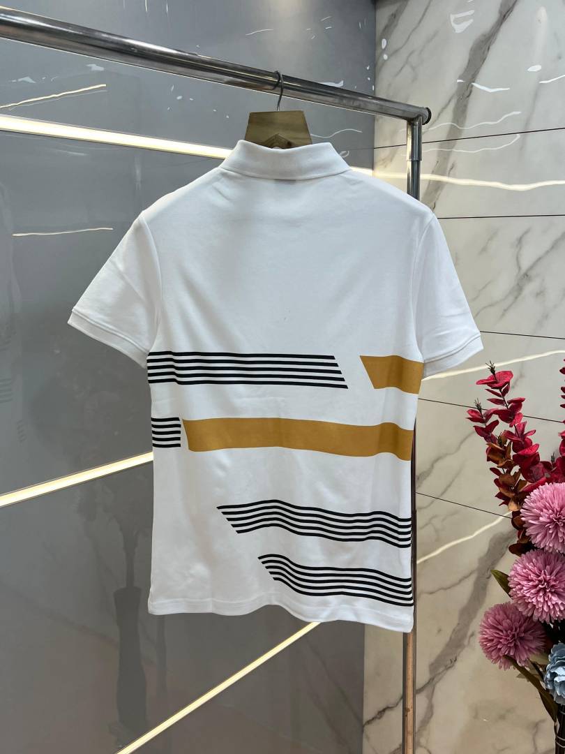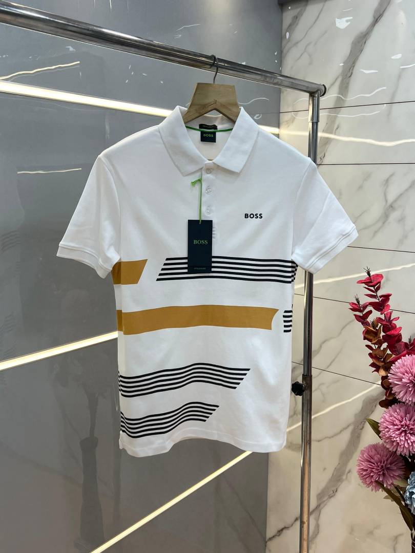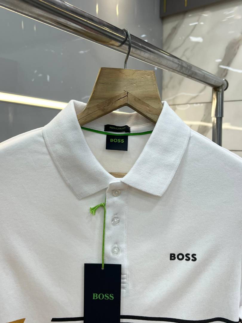 Hugo Bos s White Premium 240 gsm interlock compact cotton fabric Polo Tshirt with Front Design and Emboss Logo 3740